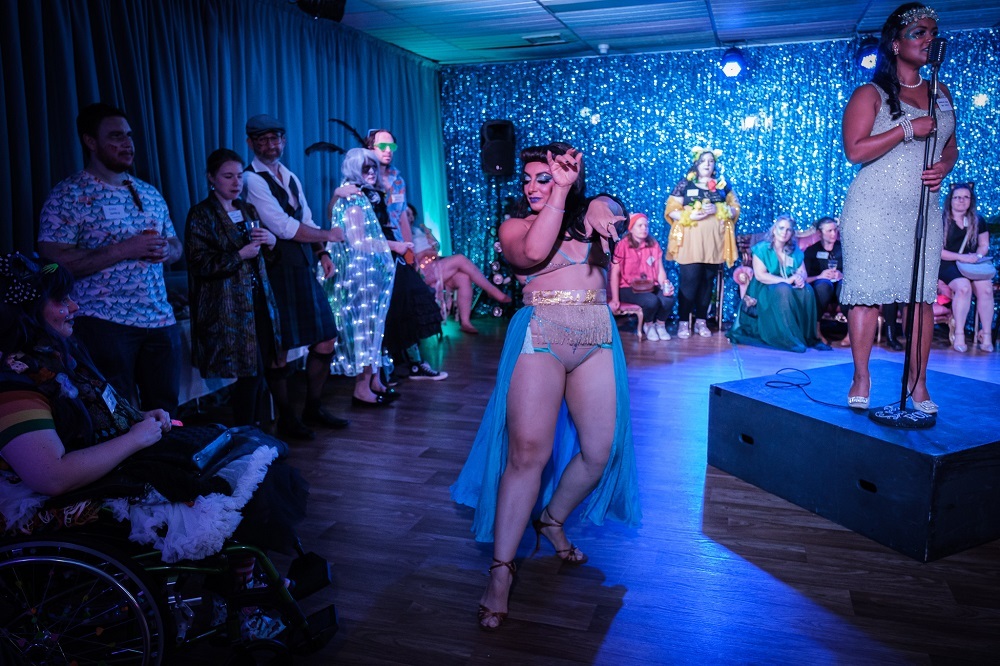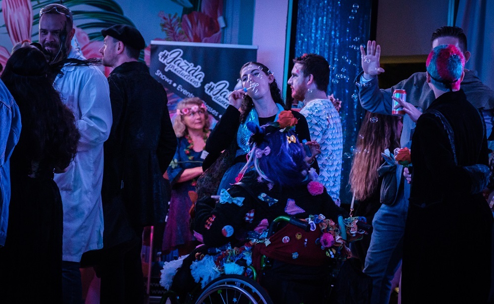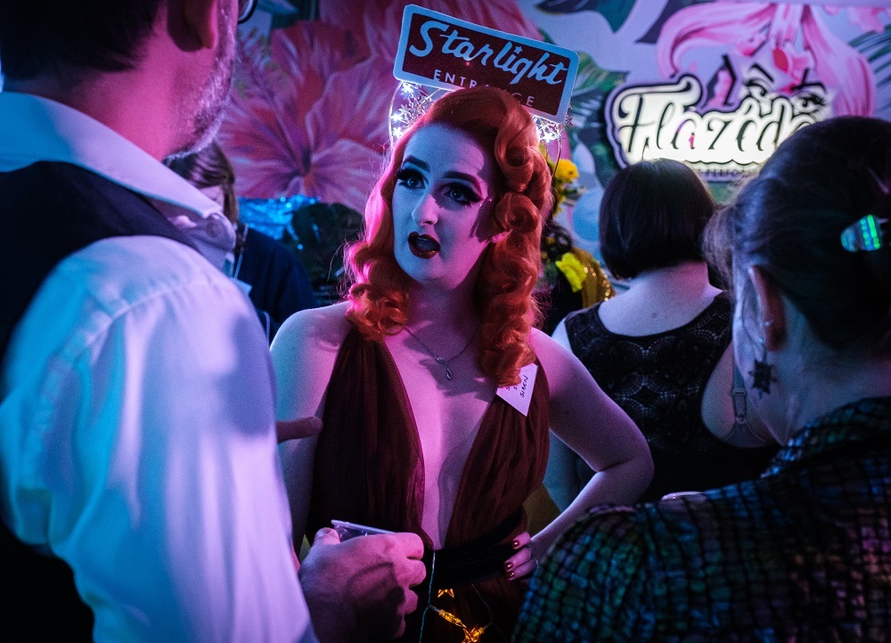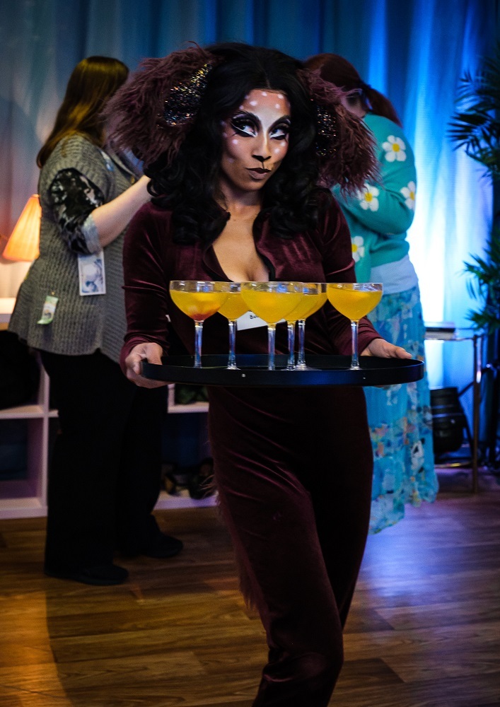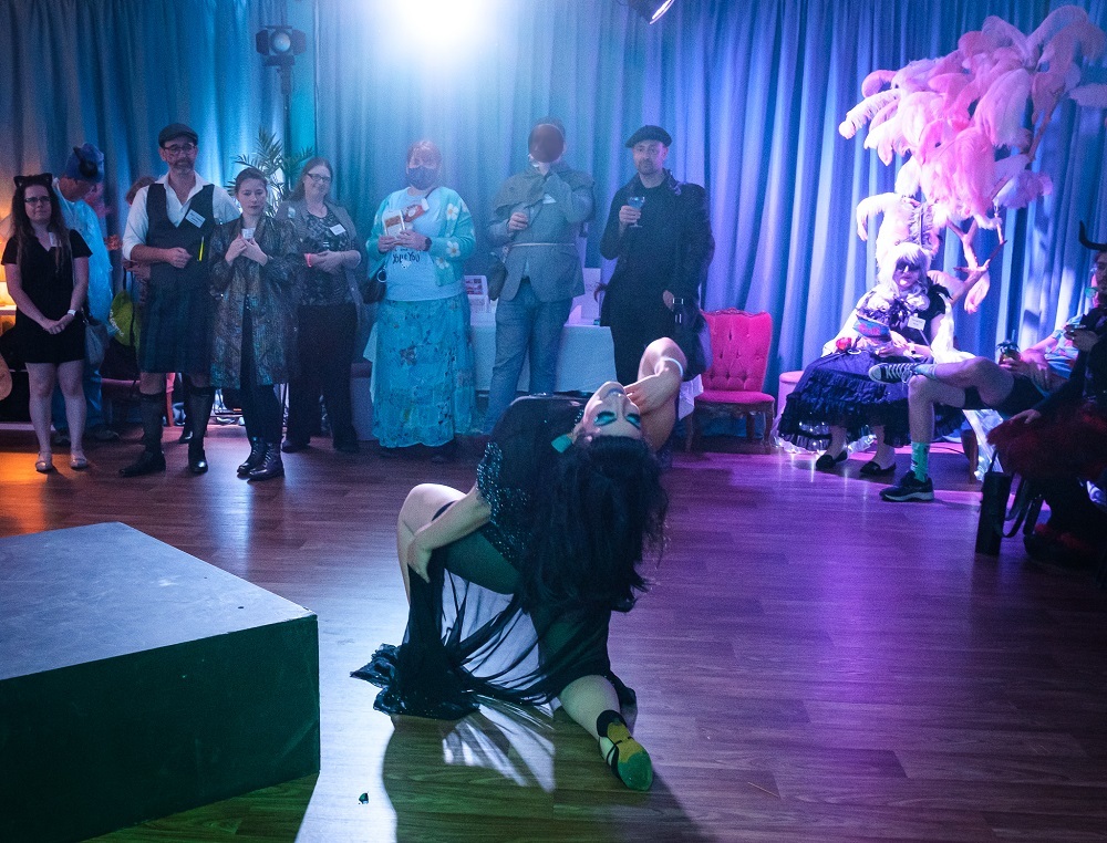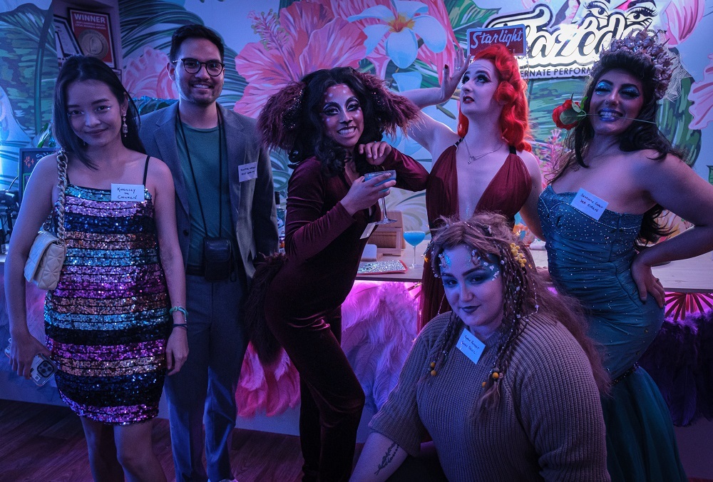 “Attendees were transported to a magical location where velvet couches, feathered lamps and sequined curtains wrapped the walls, and bisexual lighting set the mood.”